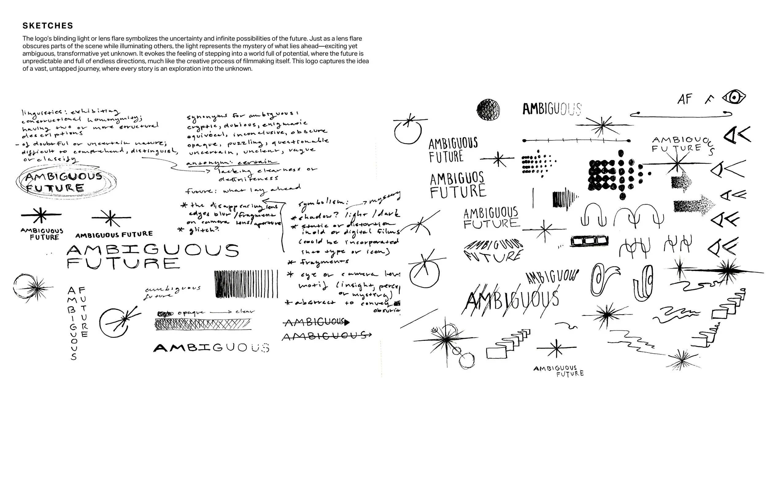 When I was first developing the concept for this mark I went right for the obvious. I tried manipulating film reels and cameras coming up with nothing even close to original when the word dawned on me…concept. “Why aren’t you thinking of this conceptually when the most obvious direction (the name of the company) begs for a mark to match?” I then explored themes in film that suggest ambiguity or “the unknown” and thought of a blinding point of light. Something that obscures the moving images to the viewer and provides ambiguity or alteration to what can be seen or known. This concept set off my exploration of this idea and translating it into a mark. I found this project exceptionally challenging but the most fun I have had brainstorming and experimenting within this medium that I have had in quite some time.